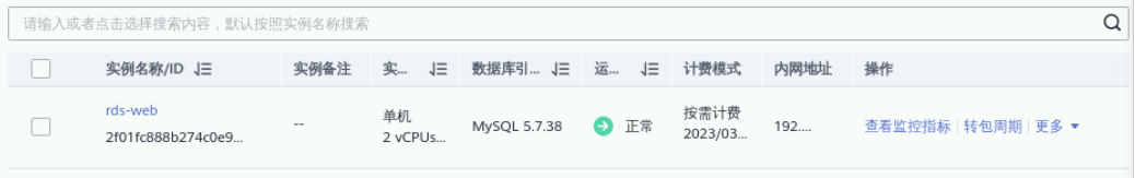 6. 您可返回数据库实例列表,可查看到正在创建的实例。实例创建完成后,单击数据库,进入详情页面。