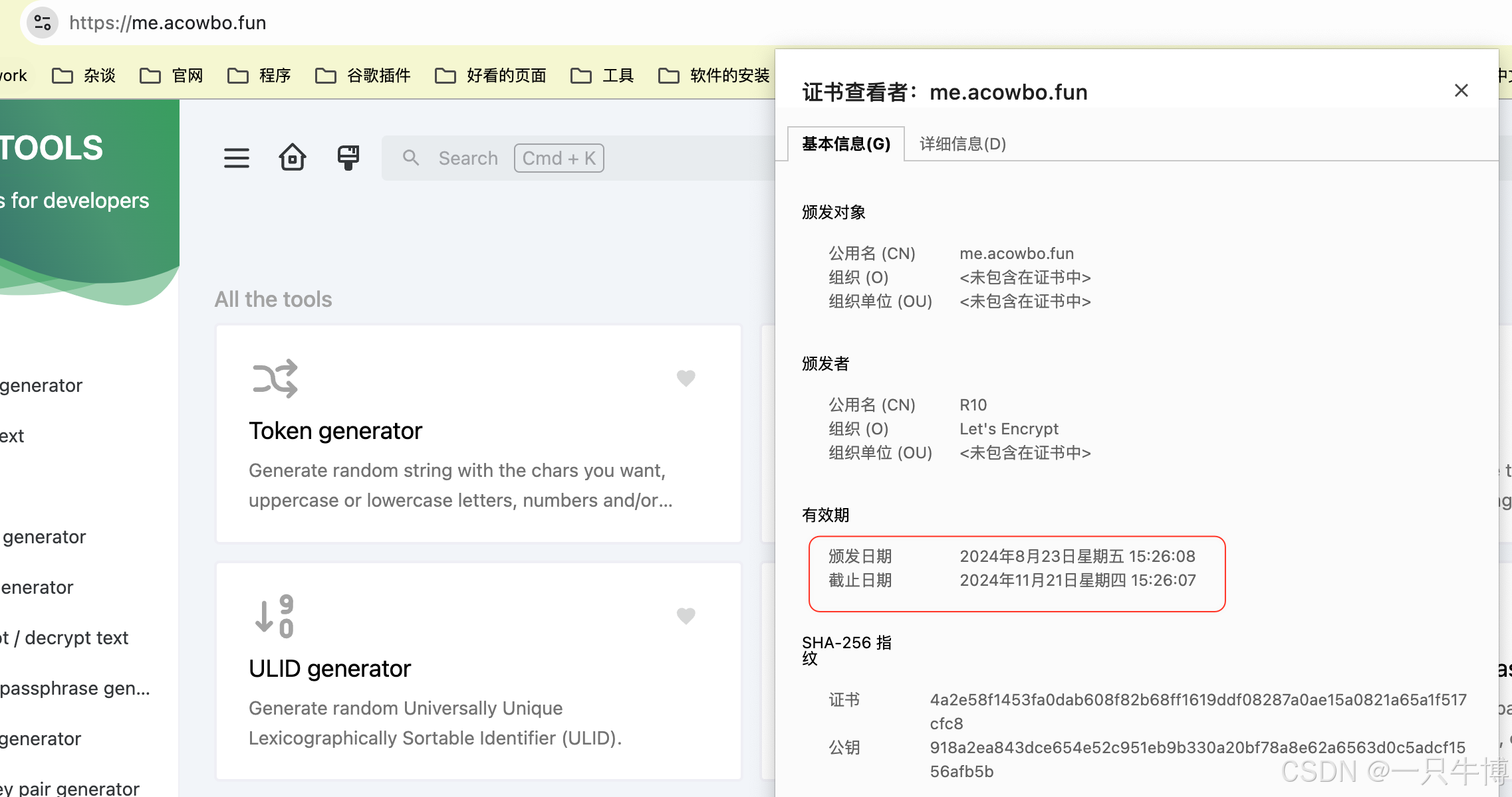 http://me.acowbo.fun/.well-known/acme-challenge/下的临时文件来验证域名的所有权。 - 验证通过后,Certbot 将获得证书并保存到本地。