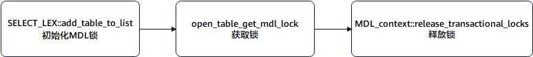 下面分别以SELECT语句和INSERT/UPDATE/DELETE语句为例,分析执行流程中MDL的申请释放。