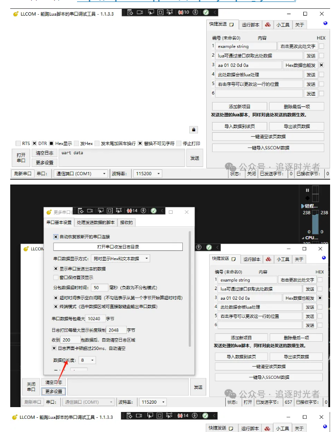 【摘要】 前言今天大姚给大家分享3款.NET开源、功能强大的通讯调试工具,帮助大家提高通讯调试的效率和准确性。LLCOMLLCOM是一个.NET开源的、功能强大的串口调试工具。支持Lua自动化处理、串口调试、串口监听、串口曲线、TCP测试、MQTT测试、编码转换、乱码恢复等功能。项目开源地址:https://github.com/chenxuuu/llcom项目详细介绍:https://mp.weix...