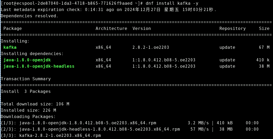 欧拉操作系统与Kafka高度兼容,整个安装过程流畅,无需额外修改配置或处理兼容性问题。这体现了欧拉操作系统对主流开源软件的良好支持,以及其在企业级应用中的稳定性和可靠性。