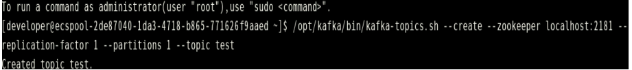 /opt/kafka/bin/kafka-topics.sh --create --zookeeper localhost:2181 --replication-factor 1 --partitions 1 --topic test