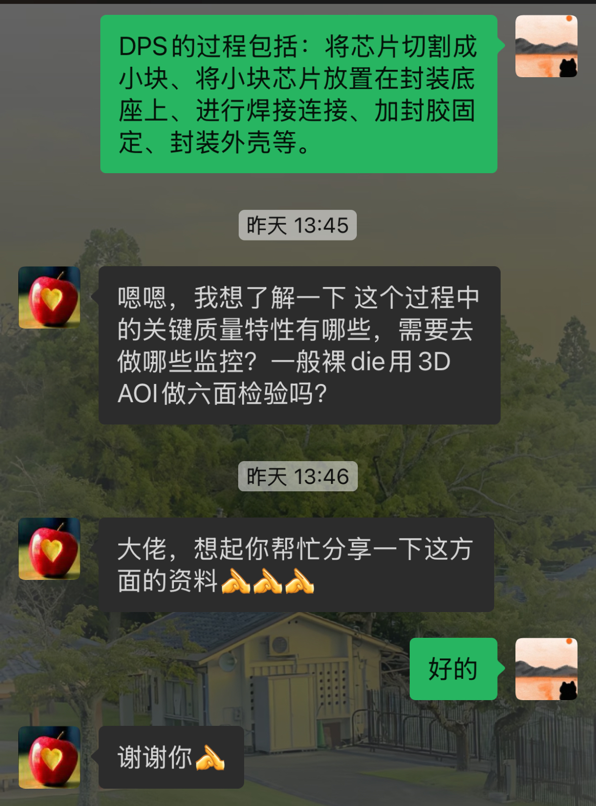 在一个寻常的午后,阳光轻洒,我收到了一位读者的私信。他说读到了我的一篇文章《关于WLCSP晶圆级封装的知识》,然后觉得很想深入了解和学习一下这方面的知识点,于是便通过我的微信公众号添加了我的微信,并向我咨询了相关的问题,我也很开心收到粉丝朋友的提问,后面也是在周末整理了相关的内容,并发表了一篇关于DPS工艺的技术文章,也是获得了很好的点评。