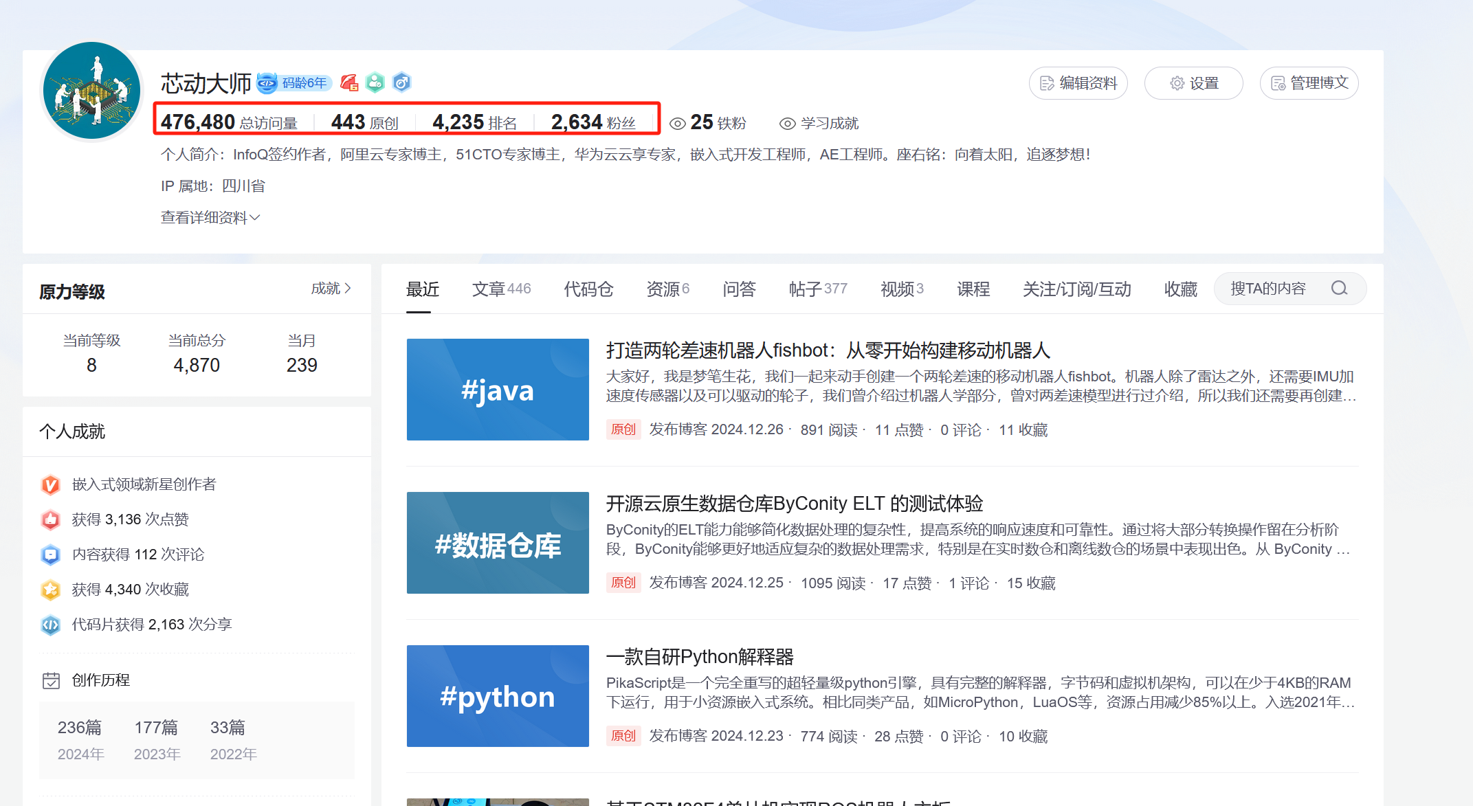 作为一个技术博主,平时会参加很多的平台活动,也是积累了很多的粉丝和资源,官方也会给我们这些博主提供很好的流量支持和奖品鼓励,总之,从刚开始接触博客开始,如今已经成为了平台累计粉丝3000+的博主啦,也很感谢自己每一年的努力,才让自己一步步的走到今天,希望在未来自己也能够越来越好。