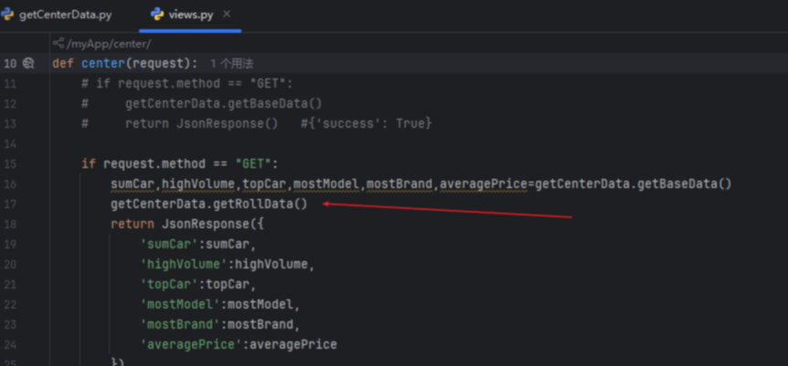 1.在myApp应用下的utils中,找到getCenterData.py文件,添加函数如下所示: