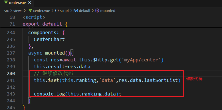 6.修改前端center.vue的代码