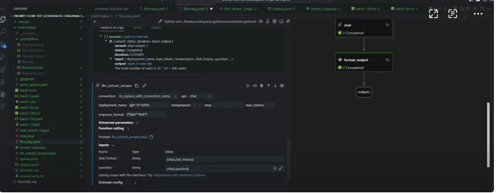 - 标准模式 :在 VS Code 的 Prompt Flow 面板中,直接输入文本或上传文件进行测试。