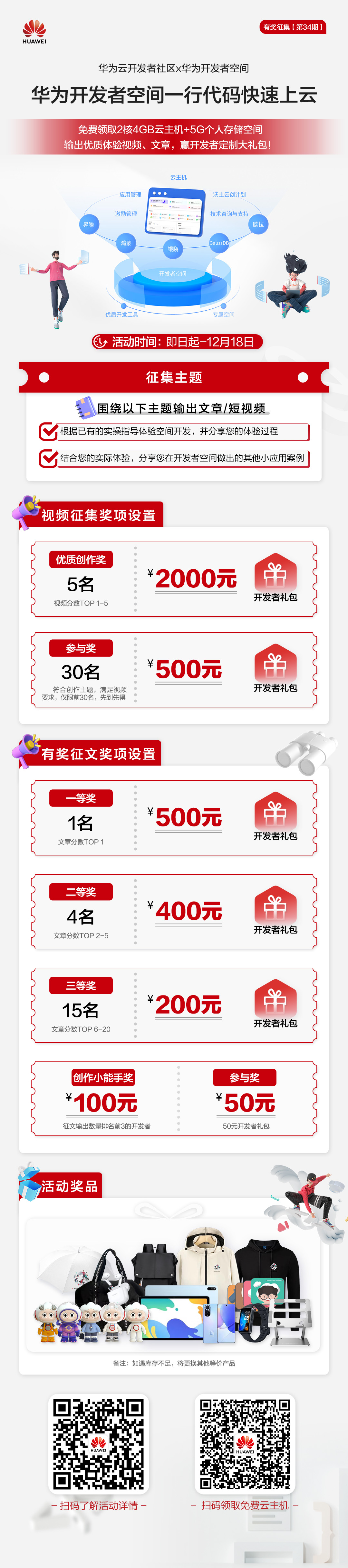 【获奖名单公布】 第34期【华为开发者空间一行代码快速上云,参与视频、文章投稿赢2000元开发者礼包】
