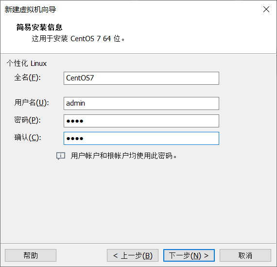 设置Linux的全名,创建默认用户。