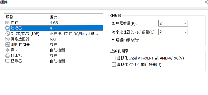 处理器给到2*2,内存给到4GB(我的电脑是8核8GB内存,相当于给了一半)。