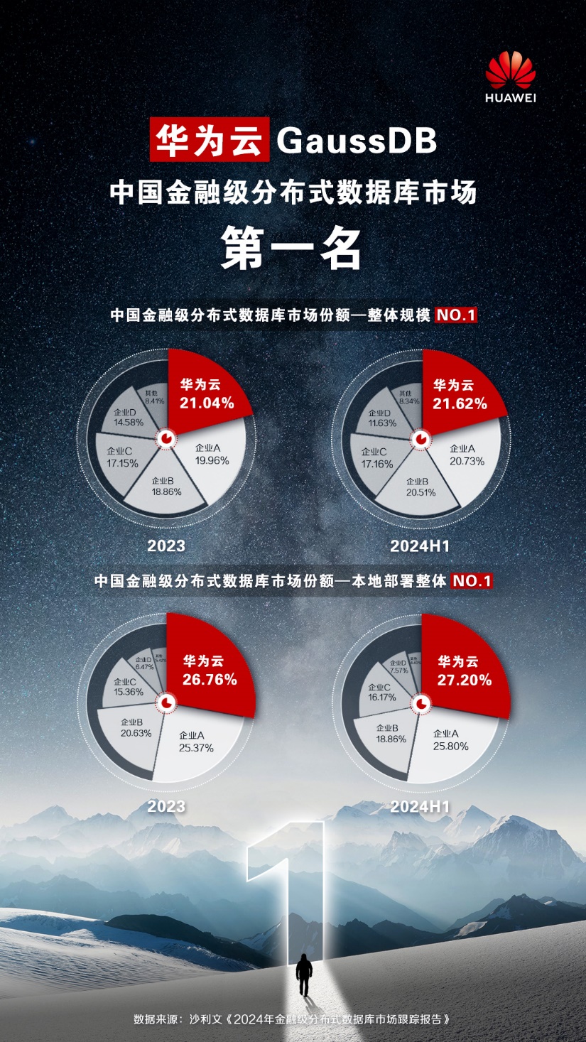 华为云GaussDB,中国金融级分布式数据库市场No.1!