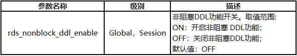 (1)非阻塞DDL特性,仅支持ALTER TABLE、RENAME TABLE、CREATE INDEX、DROP INDEX和OPTIMIZE TABLE语句。