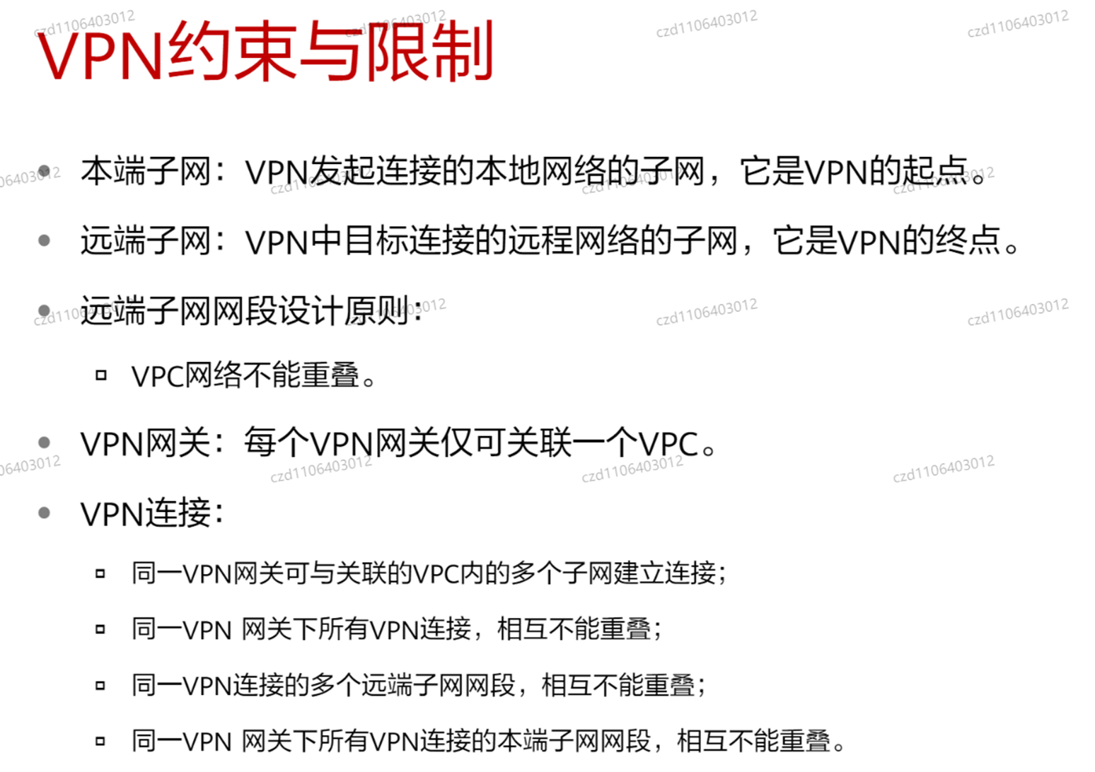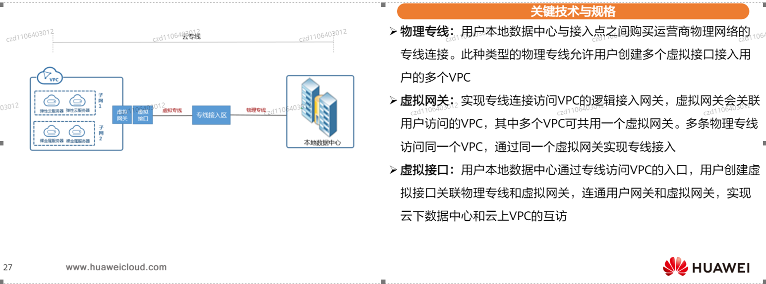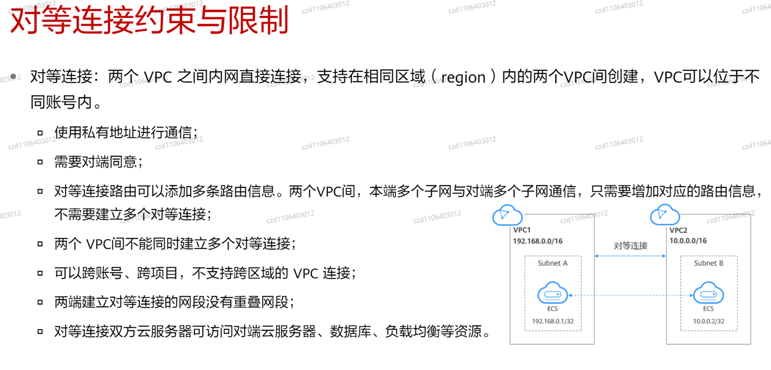 - Vpn用于用户和公网之间的连接,一个vpn只可关联一个vpc,例子:企业访问