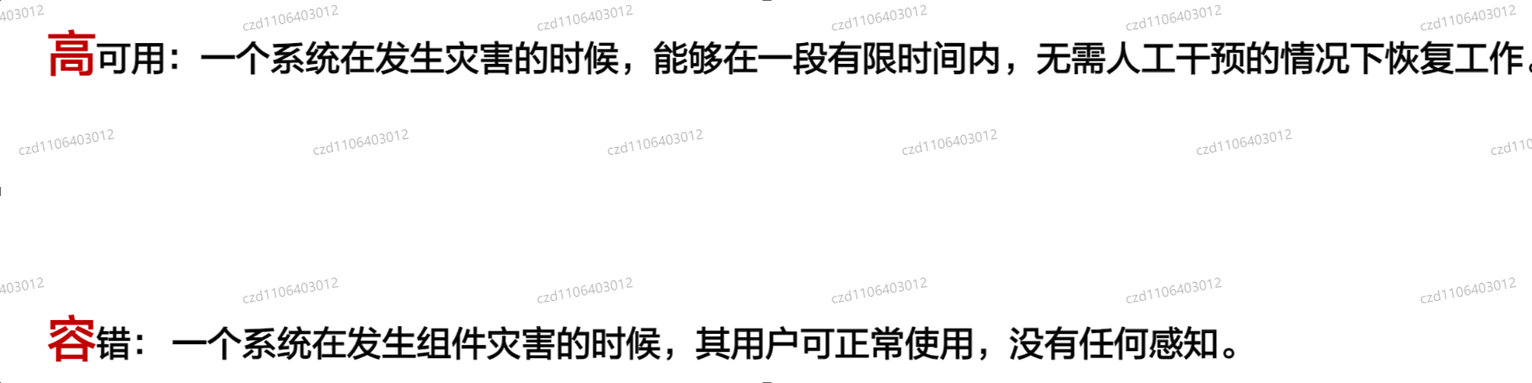 - 高可用:可靠性+可维护性,意思是,不容易坏和坏了容易修