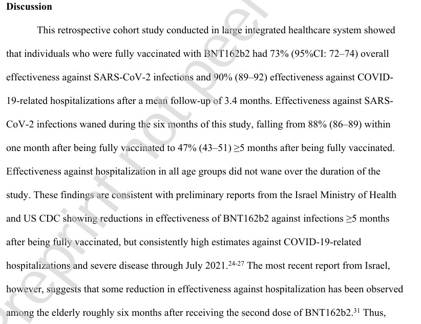 文献解读-Effectiveness of mRNA BNT162b2 COVID-19 vaccine up to 6 mon
