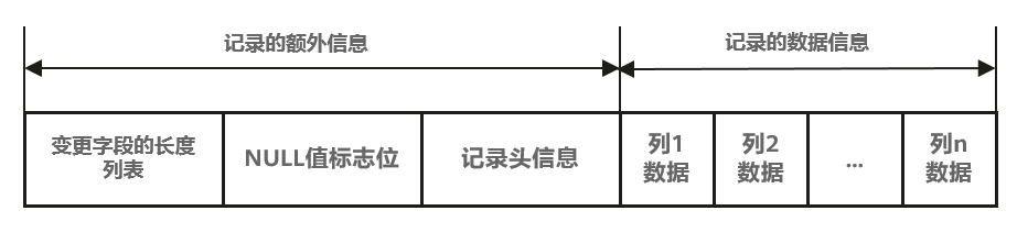 在存储引擎层Compact行格式数据,如图1所示,对于VARCHAR等这种变长的数据类型,系统不仅需要存储该字段的实际数据,还需要额外存储该数据的长度信息(即占用的字节数)。