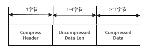 它包含Compress Header(压缩头)、Uncompressed Data Len(未压缩前的字段长度)和Compressed Data(压缩数据),作用如下: