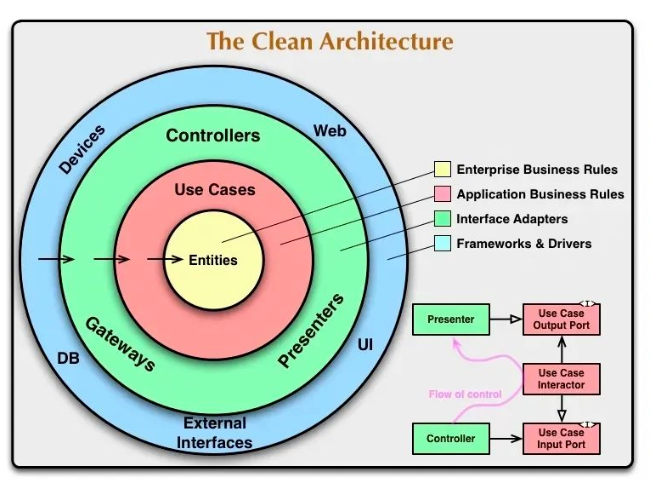 整洁架构(Clean Architecture)是一种软件架构设计原则,由罗伯特·C·马丁(Robert C. Martin)提出,它旨在使软件系统更加灵活、可维护和可测试,其核心目标是构建一种简洁、灵活且易于维护的系统结构。