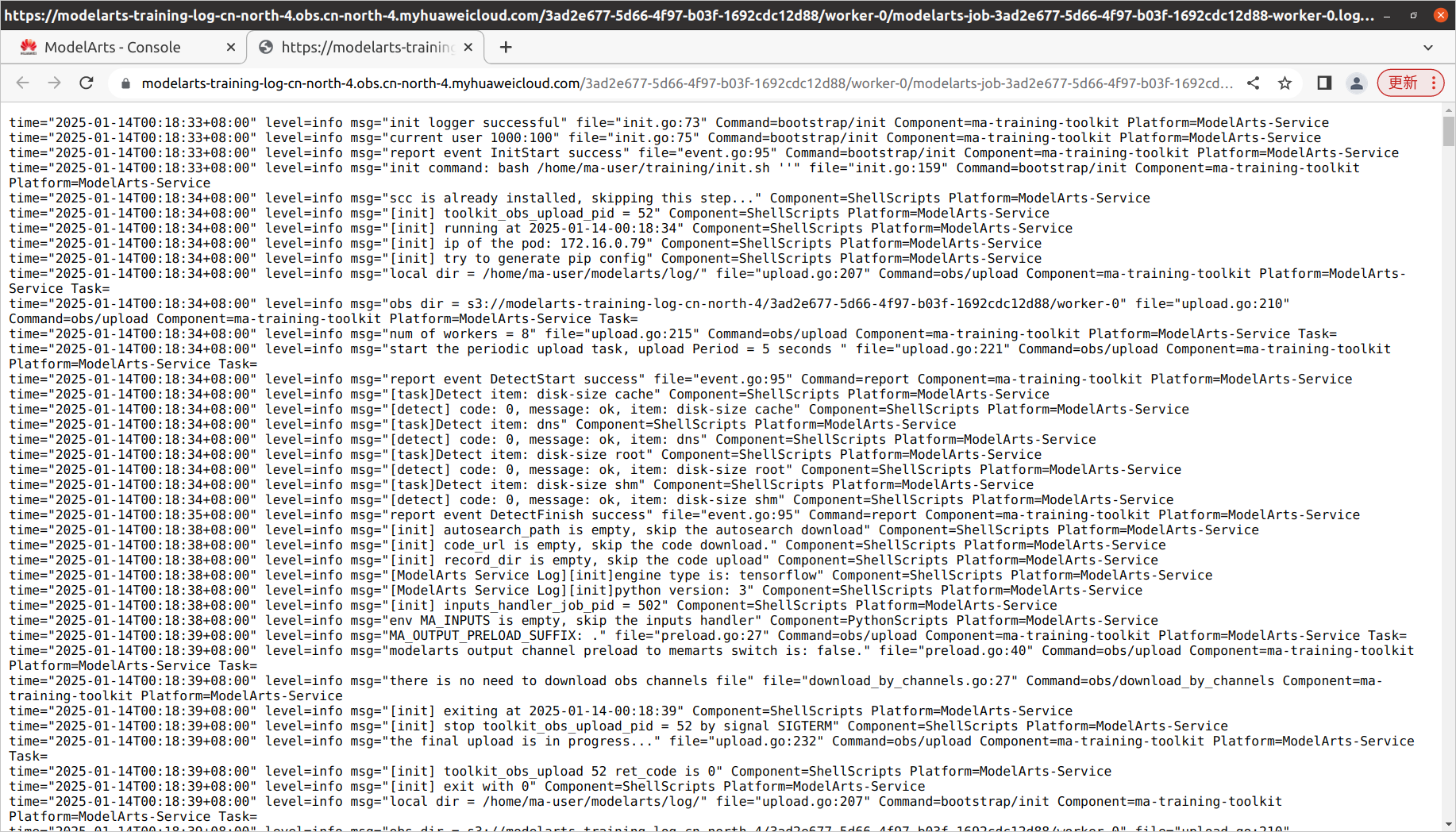 time=“2025-01-14T00:19:02+08:00” level=info msg=“the final upload is in progress…” file=“upload.go:232” Command=obs/upload_by_channels Component=ma-training-toolkit Platform=ModelArts-Service Task=srt_log_collection