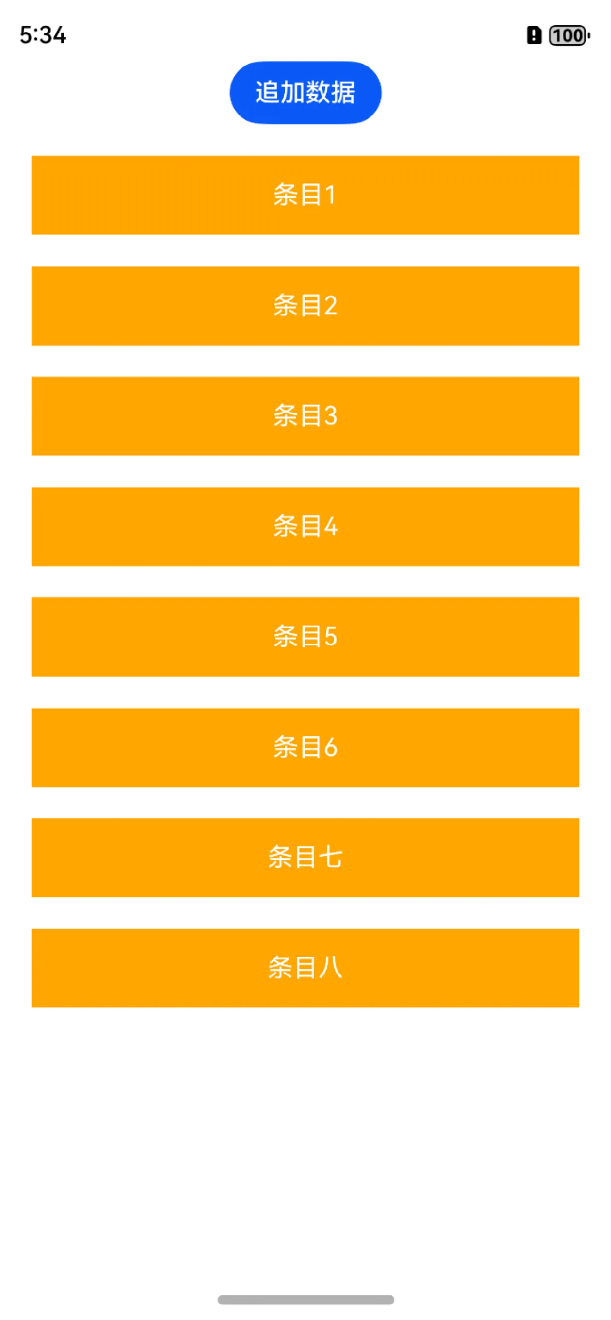 当我们点击追加数据按钮时,正常的情况会是,数组中增加数据,驱动UI更新,List组件应该会增加【条目七,条目八】两条数据。