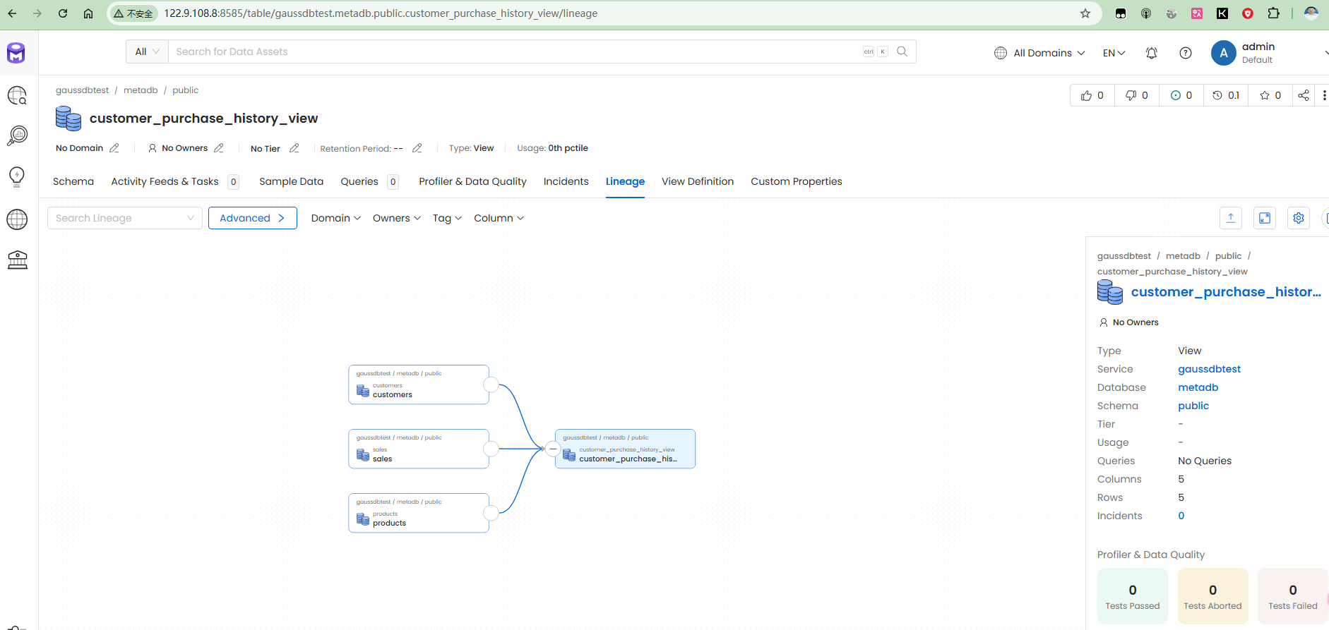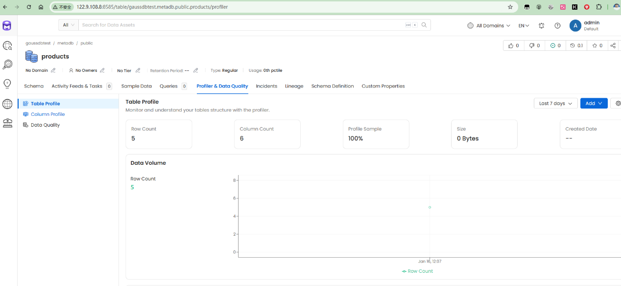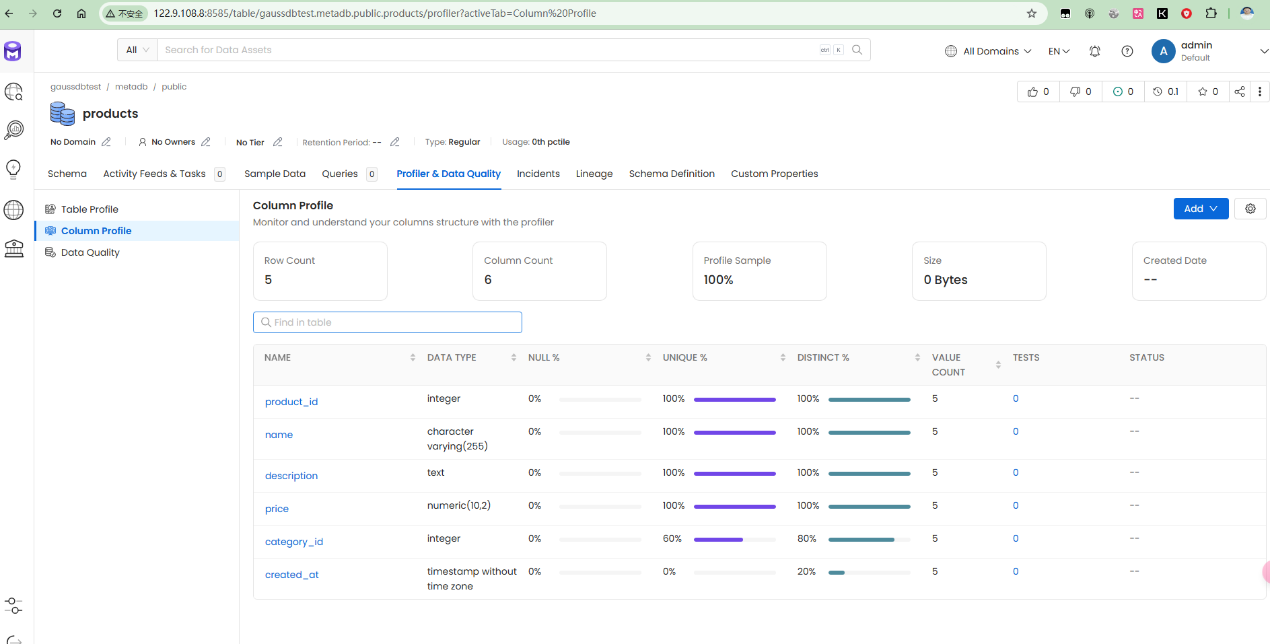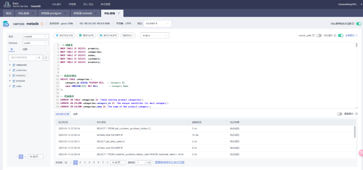 经过分析,采用在GaussDB中创建样例数据库,并添加一些表,视图,存储过程等对象。添加测试数据,然后通过openmetadata采集元数据信息。