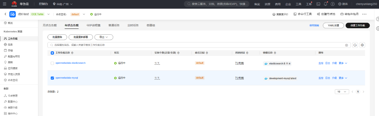 在CCE中添加2个有状态的工作负载,具体如下: