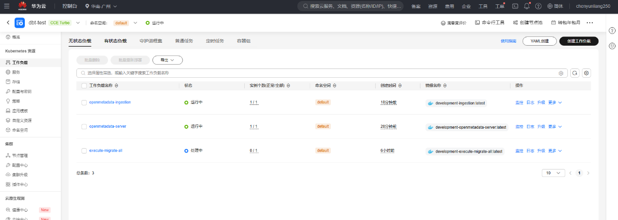 在CCE中添加3个无状态的工作负载,具体如下: