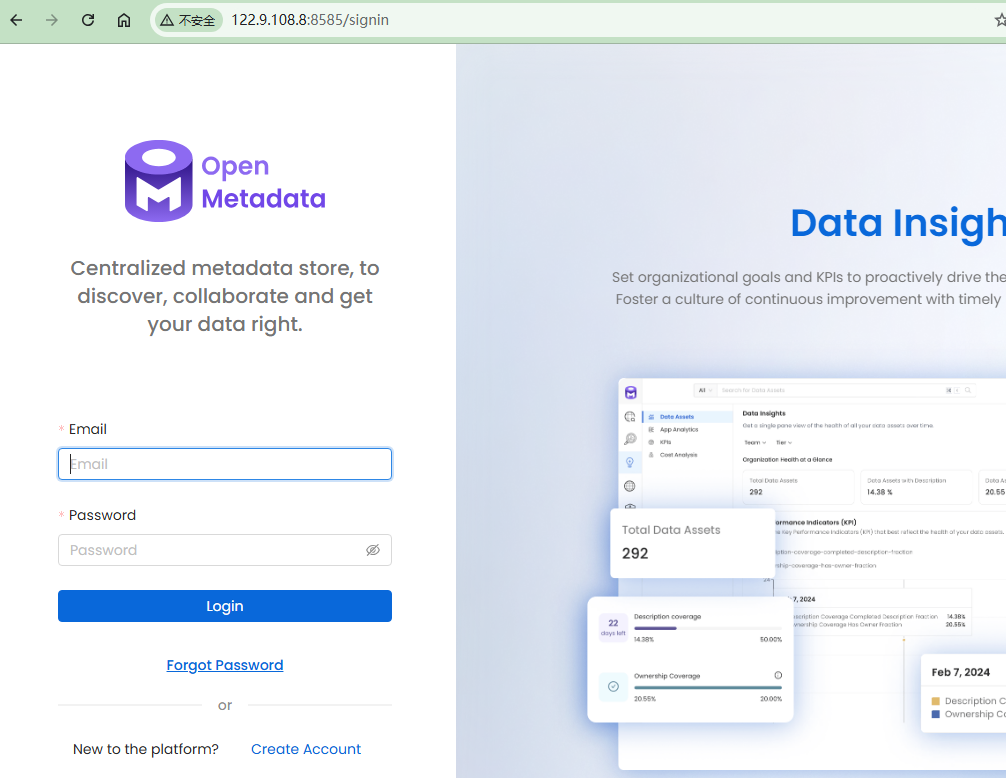 在浏览器访问ELB的公网IP,访问openmetadata-server地址: