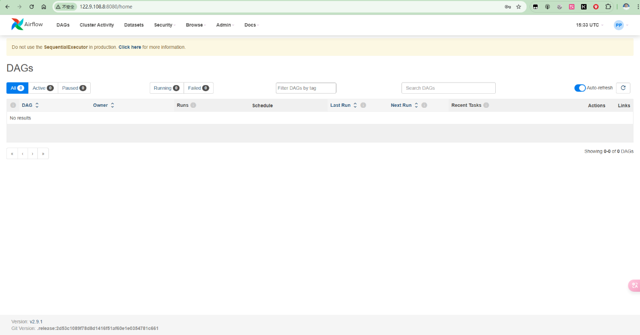 这时候还没有DAG任务,我们接下来通过在openmetadata-server创建DAG任务。