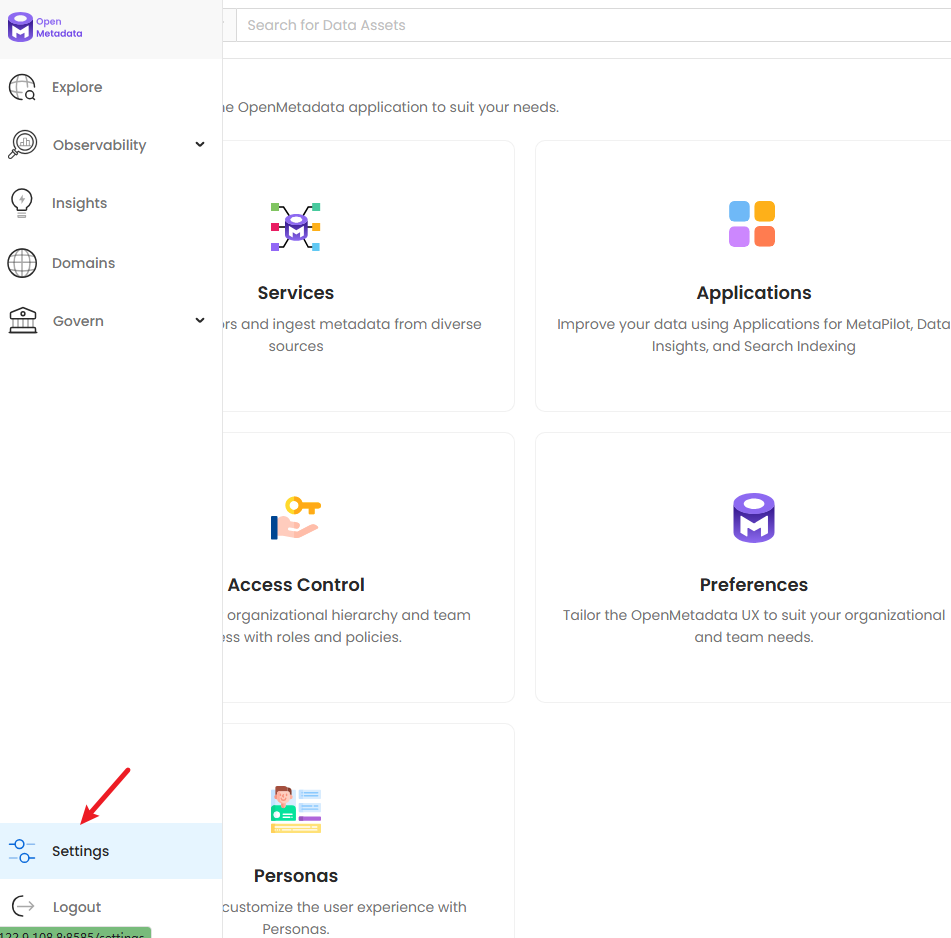 访问openmetadata-server