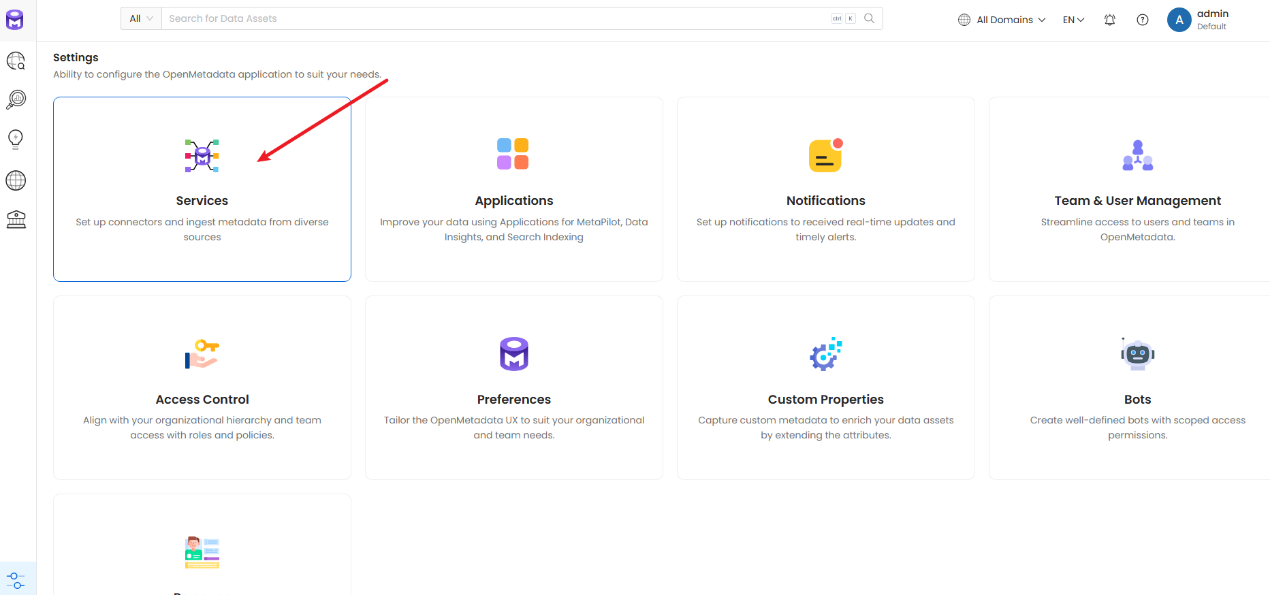 输入用户名和密码(admin@open-metadata.org,admin),进入openmetadata-server界面: