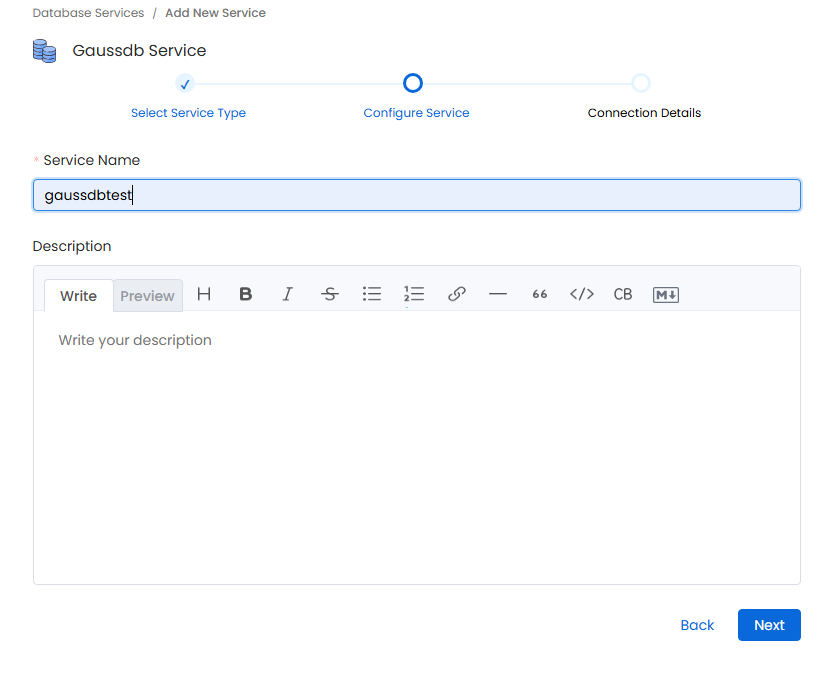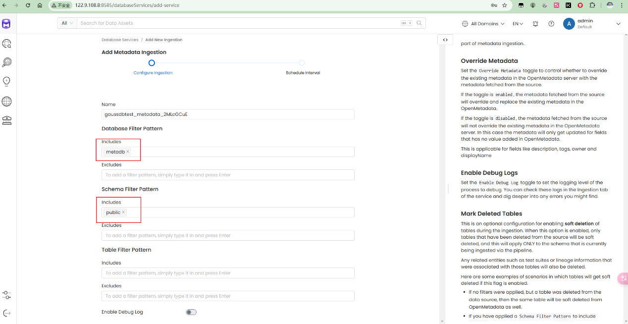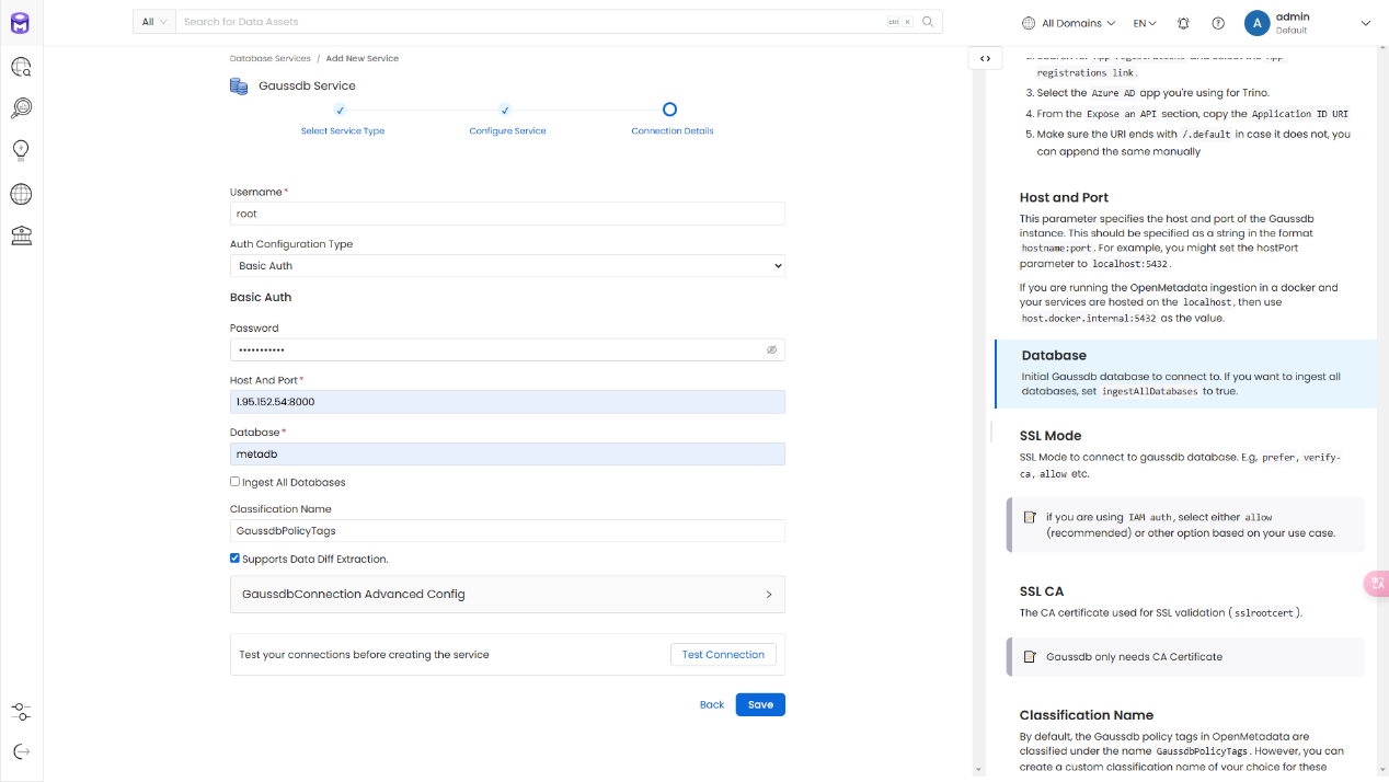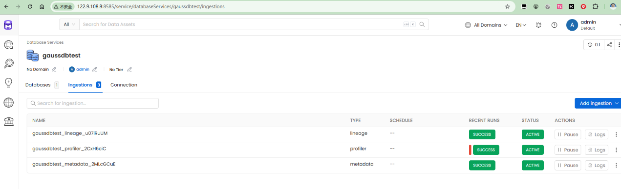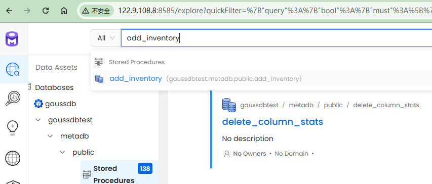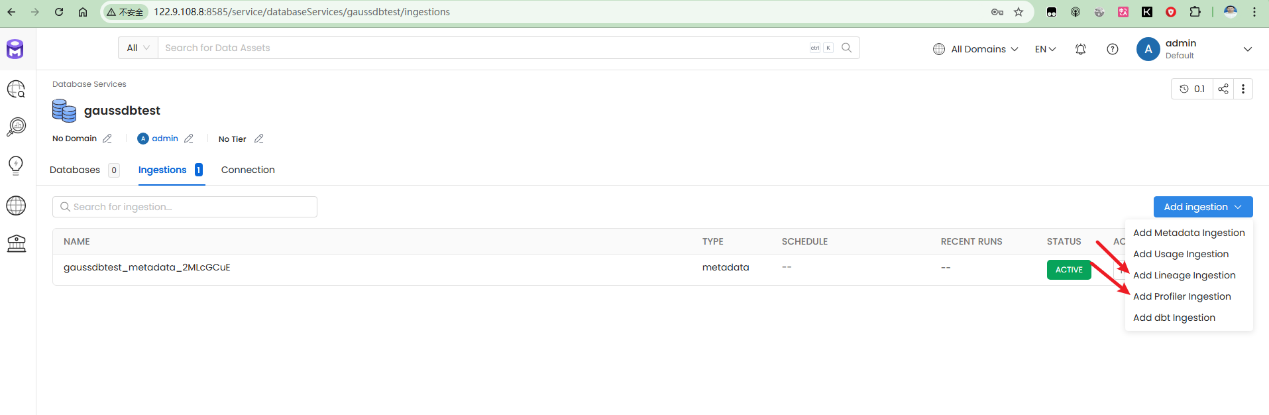 • 可以通过 openmetadata WebUI 管理存储在GaussDB内的元数据信息。