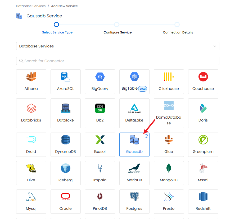 上图介绍了新增GaussDB连接器的大概步骤。