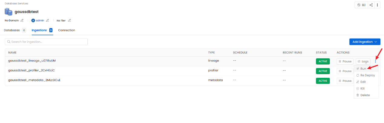 • 先点击Type为metadata的ingestion,然后点击Run: