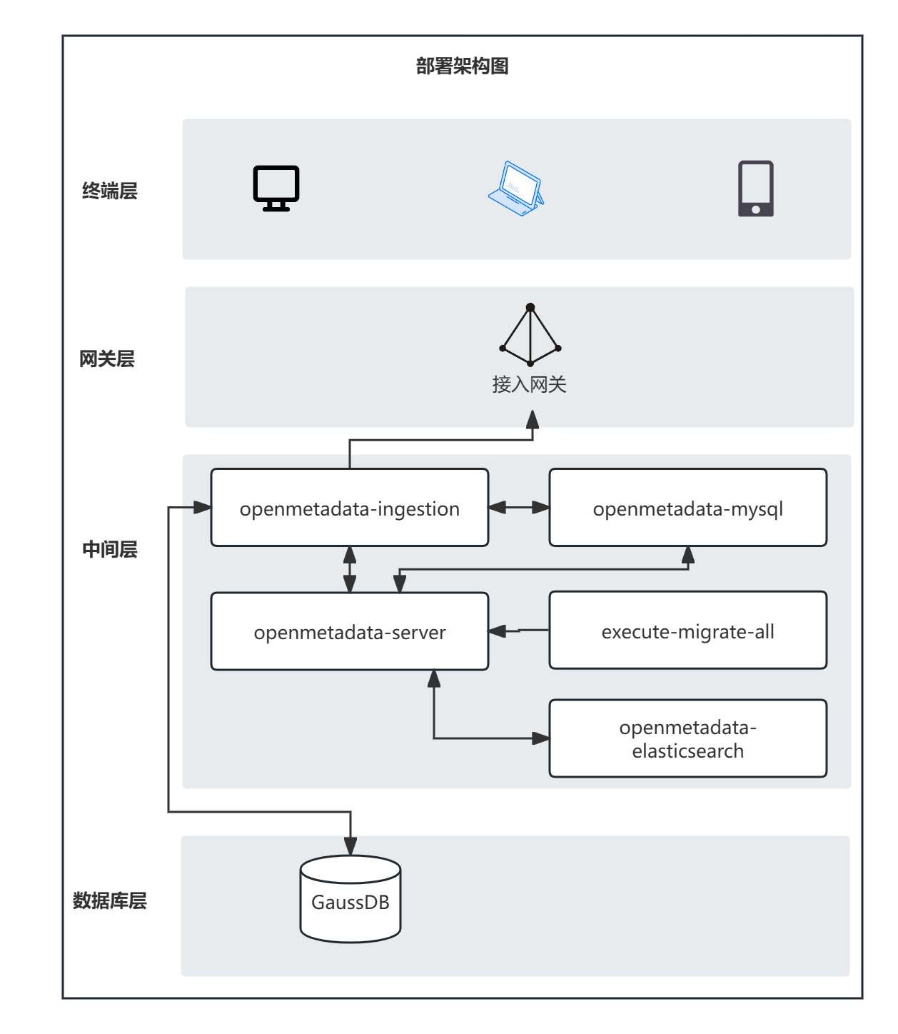 • Openmetadata 安装成功后使用GaussDB 存储其采集到的元数据信息。