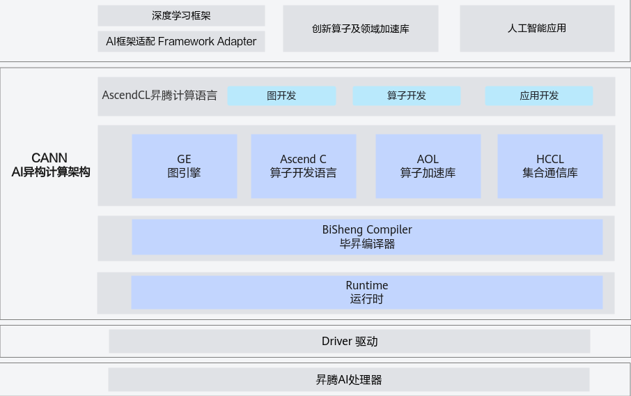 异构计算架构CANN(Compute Architecture for Neural Networks)是昇腾针对AI场景推出的异构计算架构,向上支持多种AI框架,包括MindSpore、PyTorch、TensorFlow等,向下服务AI处理器与编程,发挥承上启下的关键作用,是提升昇腾AI处理器计算效率的关键平台。同时针对多样化应用场景,提供多层次编程接口,支持用户快速构建基于昇腾平台的AI应用和业务。