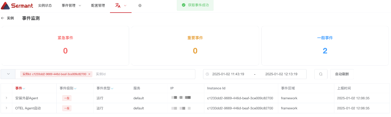 • 支持在事件管理标签页展示挂载外部Agent的具体事件信息。