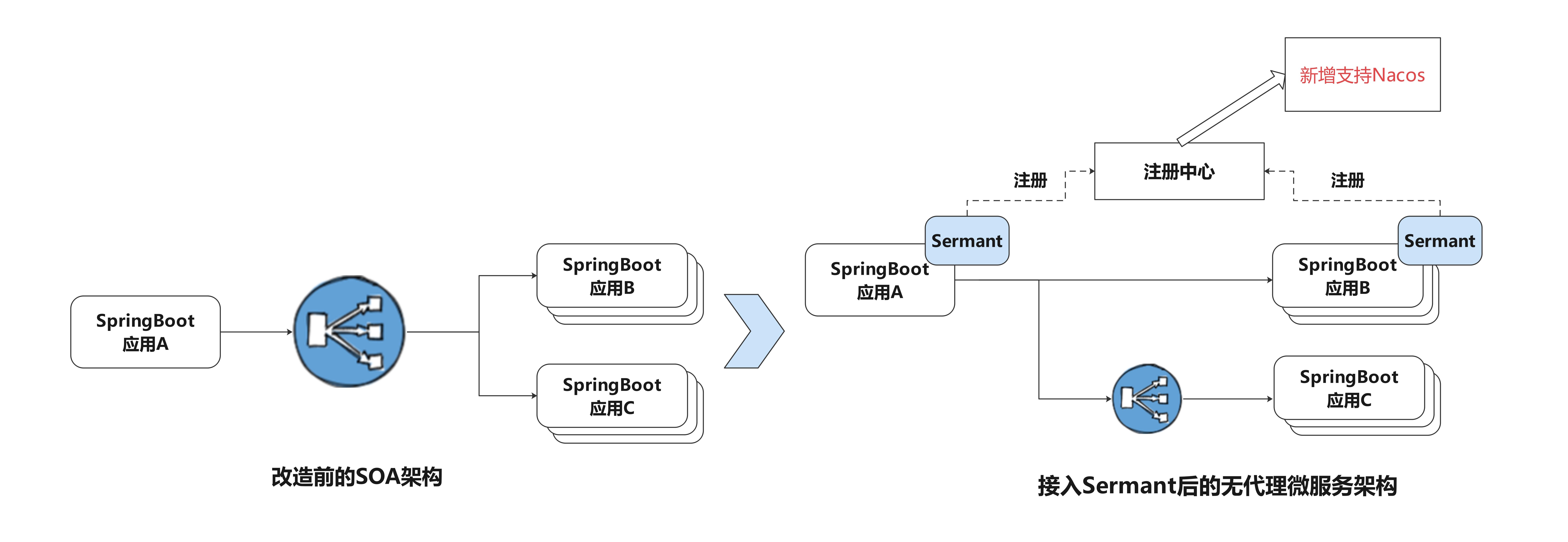 企业的集中式网关架构可以借助SpringBoot注册插件实现去网关并接入Nacos等注册中心,逐步向云原生无代理服务网格架构演进,并具有如下优势: