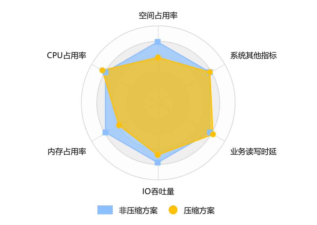 非压缩方案与压缩方案性能对比,如图1所示。比如,压缩和解压操作会消耗CPU资源,进而对系统性能产生影响。而数据在压缩前后硬盘和内存中的大小差异,也可能给数据库内存管理带来风险。因此,从业务系统和数据库的整体角度出发,如何平衡压缩率和系统性能,成为应对业务快速增长带来的存储问题的关键难点之一。
