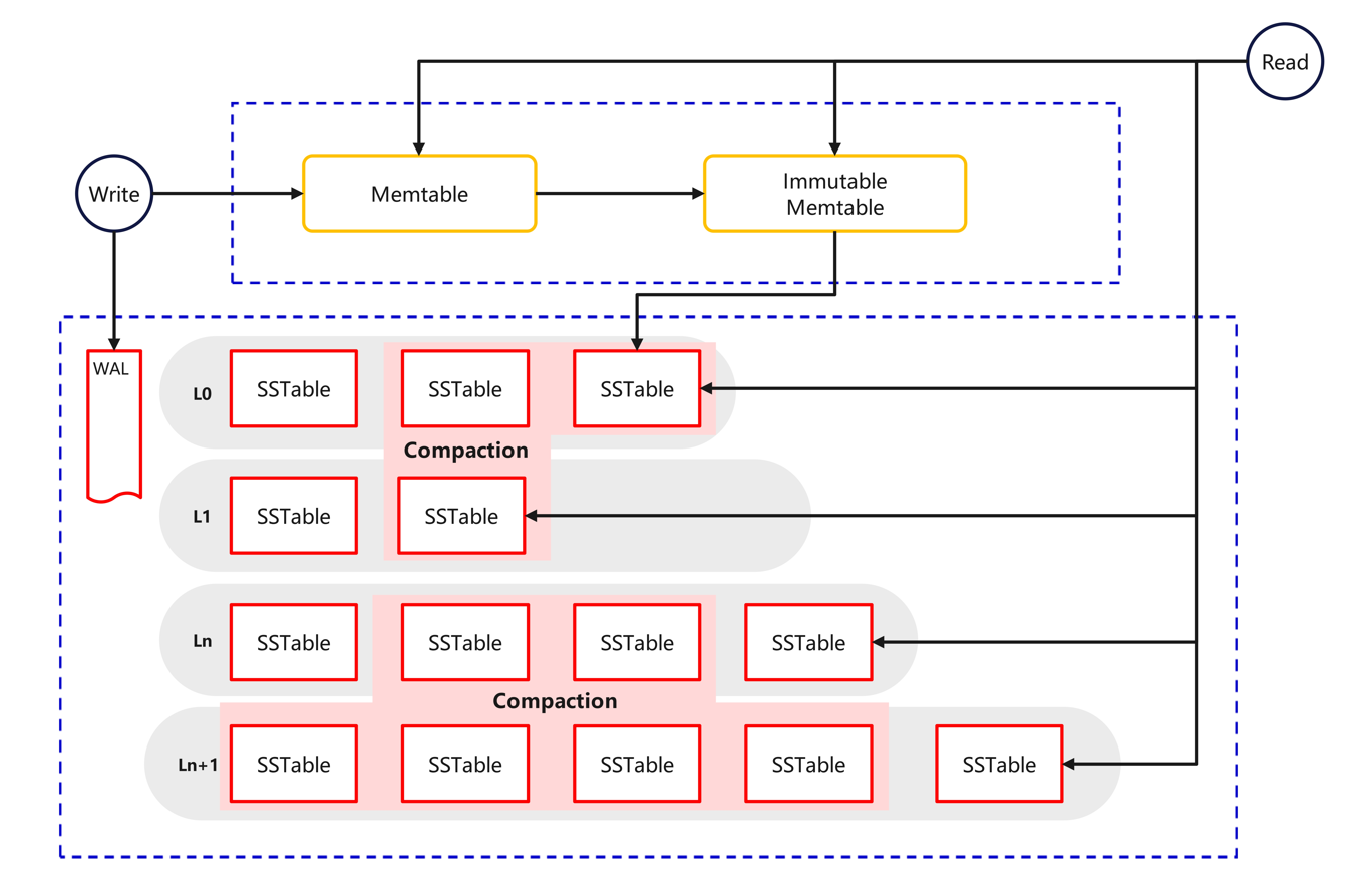 而LSM-Tree结构是由核心的memtable和SSTFile组成的多层架构,对业务数据导入非常高效。数据的增、删、改操作,首先以追加的方式更新到memtable,随后通过Flush和Compaction操作进行SSTFile的归并。