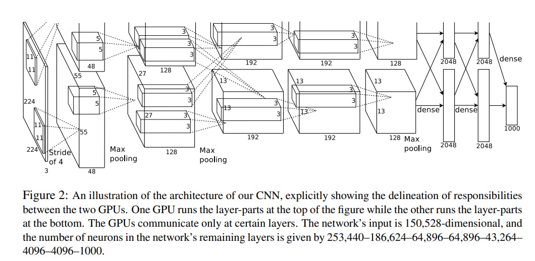 - 在CNN中使用重叠的最大池化。此前CNN中普遍使用平均池化,AlexNet全部使用最大池化,避免平均池化的模糊化效果。并且AlexNet中提出让步长比池化核的尺寸小,这样池化层的输出之间会有重叠和覆盖,提升了特征的丰富性。
