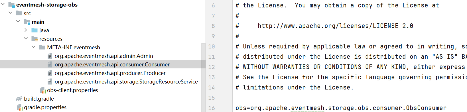 采用eventmesh提供的spi机制,加载对应的类 - OBS配置