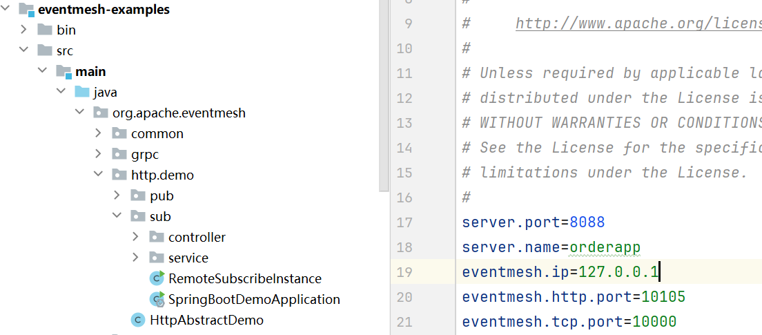 - 在IDEA中运行:org.apache.eventmesh.http.demo.sub.SpringBootDemoApplication