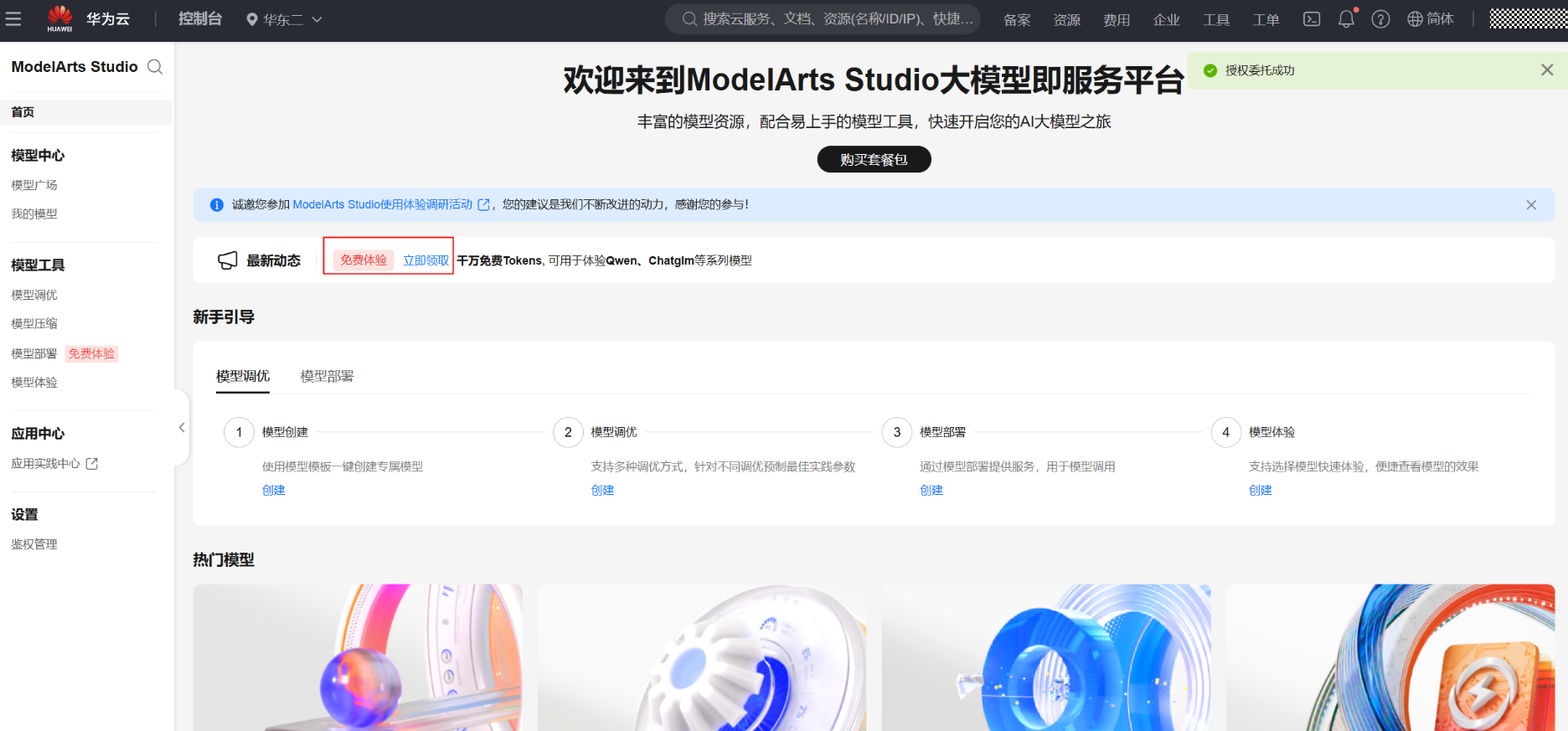 或直接点击链接进入:MaaS官方链接:https://console.huaweicloud.cn/modelarts/?region=cn-east-4#/model-studio/homepage