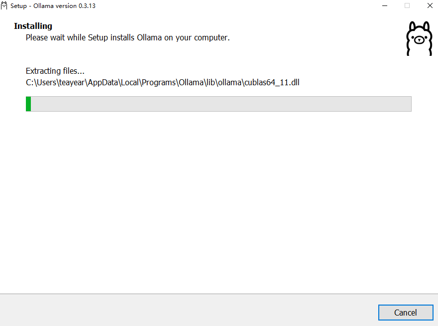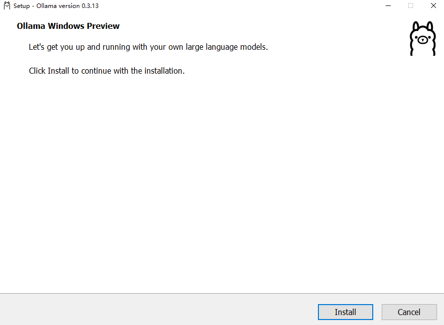 双击安装文件,点击「Install」开始安装。目前的Ollama会默认安装到C盘,路径如下:C:\Users%username%\AppData\Local\Programs\Ollama,并不会让用户自定义选择安装路径。