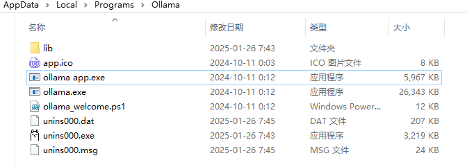 将上述更改的环境变量保存后,在「开始」菜单中找到并重新启动 Ollama。找到ollama.exe的所在位置,在该位置打开cmd
