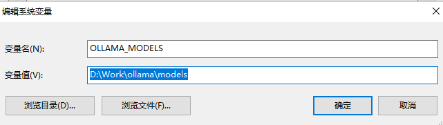 打开「系统环境变量」,新建一个系统变量OLLAMA_MODELS ,然后设置ollama模型的存储路径。