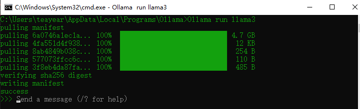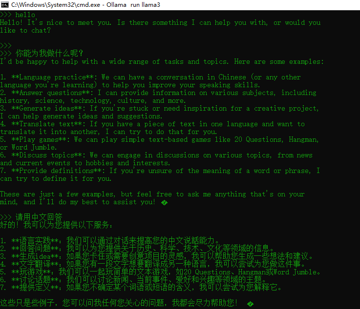 该命令会启动并运行名为Llama 3的大型语言模型。Ollama是一个开源工具,它允许用户在本地计算机上轻松地运行和部署大型语言模型,如Llama 3。