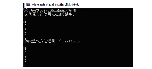 Console.WriteLine("传统迭代方法返回一个List<int>");