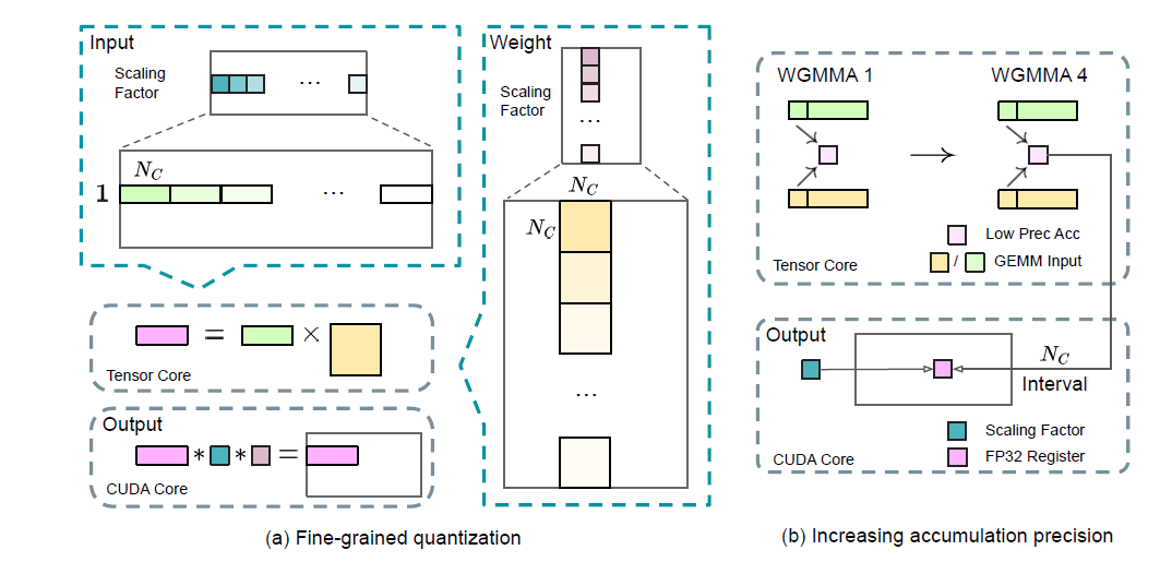 建议:支持细粒度量化,使张量核能够接收缩放因子并直接完成部分和累加去量化,避免频繁数据移动。